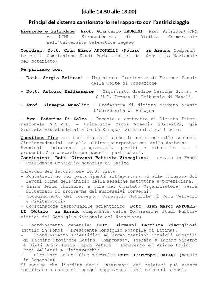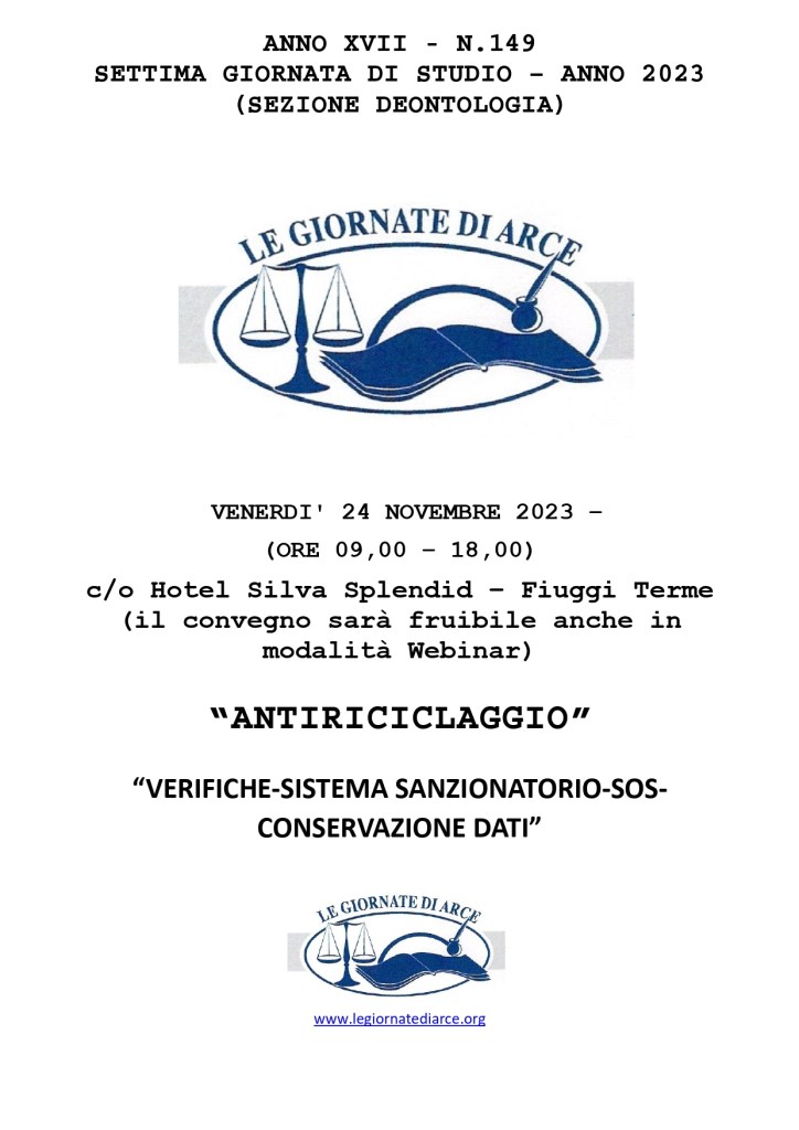 “Le Giornate di Arce” – convegno intitolato “ANTIRICICLAGGIO – VERIFICHE-SISTEMA SANZIONATORIO-SOS – CONSERVAZIONE DATI”
